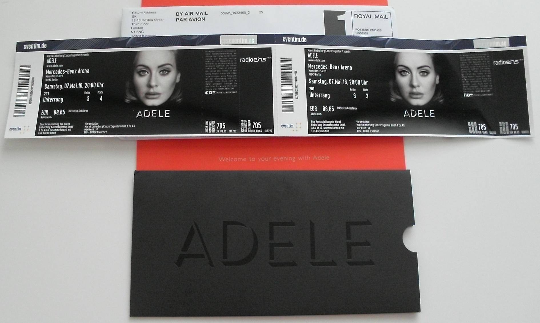 Když jsem před lety poprvé se slzami v očích doposlechla dojemnou píseň Make You Feel My Love od Adele, v ten moment mi bylo jasné, že tuto talentovanou zpěvačku s podmanivým hlasem musím stoprocentně vidět naživo! Do České republiky zatím nezavítala, přesto mohu s radostí říci, že 7. května se můj sen splnil. Na koncert jsem plánovala vyrazit s mou kamarádkou Martinou. V den předprodeje lístků to byl jeden velký adrenalin, protože ve chvíli spuštění dané stránky jsem byla na tzv. "čekací listině" nakupujících. Vše bylo otázkou pár vteřin, proto jsme se musely rychle rozhodnout, která místa zakoupit. Jakmile jsem měla objednáno a zaplaceno, mohlo se začít slavit! Ještě to ale mělo jeden háček. Lístky totiž měly dorazit na adresu kupujícího až nějaký ten týden před akcí. Už jsem netrpělivě očekávala zásilku ze zahraničí a po velmi strastiplné cestě se nakonec obálka z Anglie ke mně i dostala. To bylo radosti, když jsem ji rozbalila.